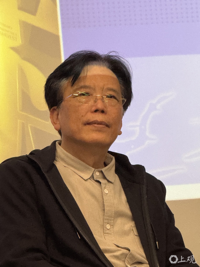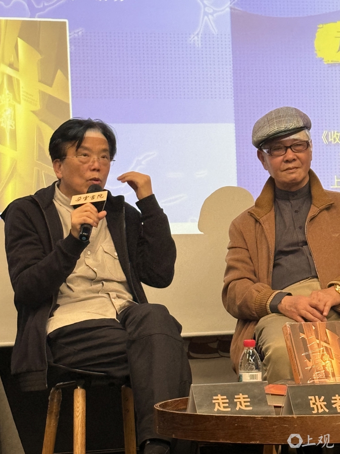 张者(左)与丁言鸣在《天边》分享会上。施晨露摄